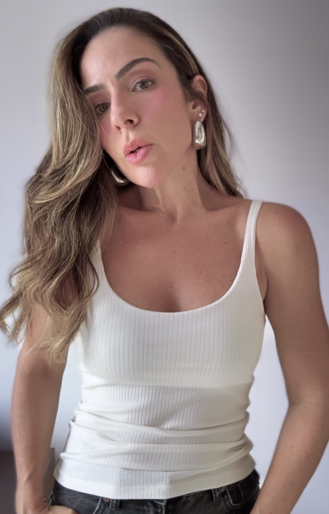 Decote e cavas no lugar em um modelo que você vai usar sozinha, muito bem acompanhada de uma terceira peça ou até como underwear!