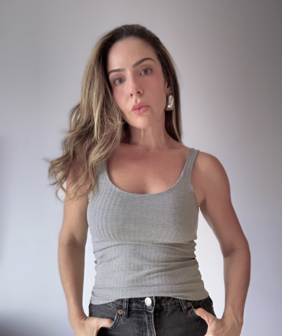 Decote e cavas no lugar em um modelo que você vai usar sozinha, muito bem acompanhada de uma terceira peça ou até como underwear!