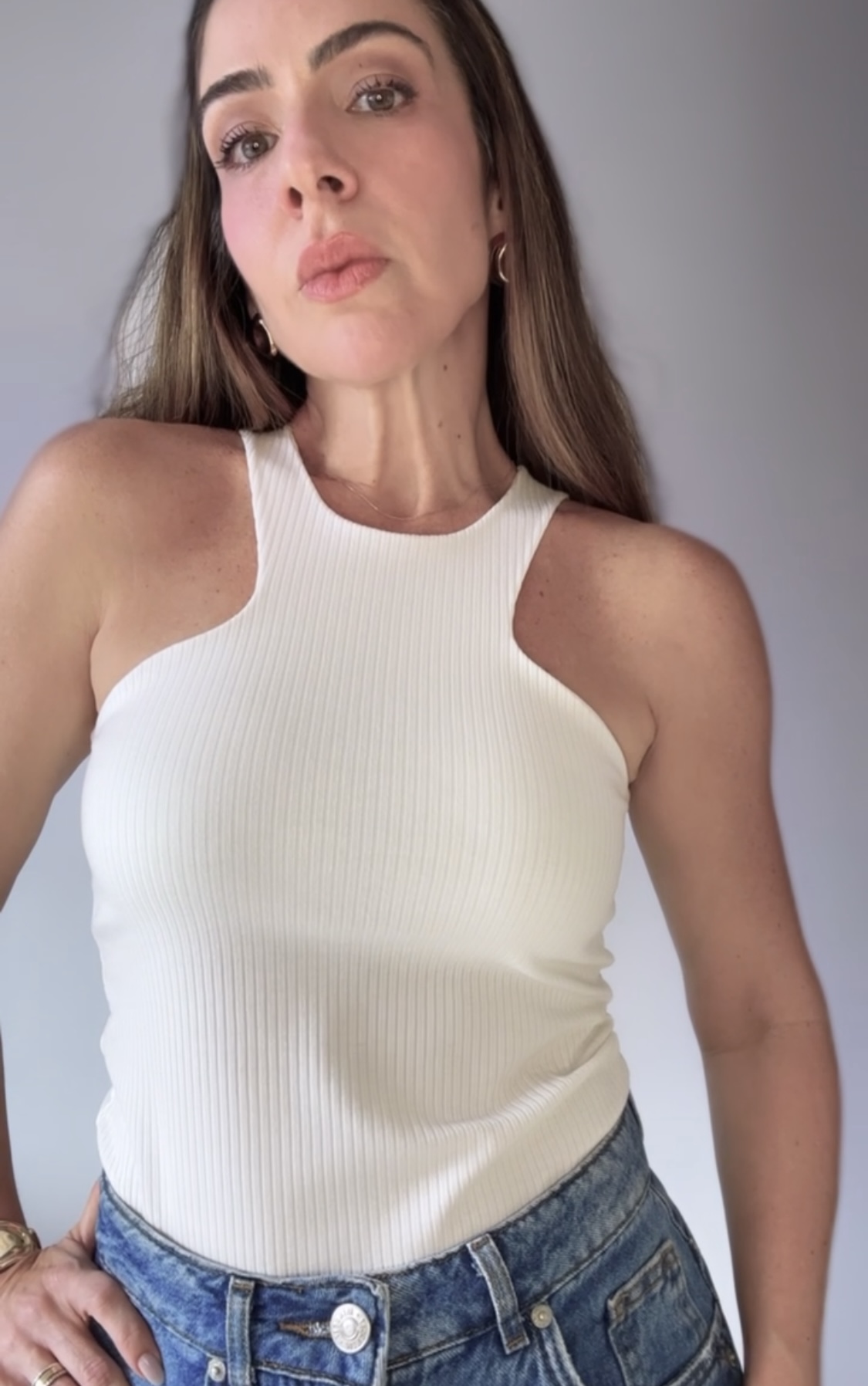 Decote elegante + top interno de sustentação pra usar com ou sem sutiã.